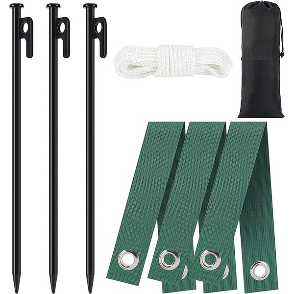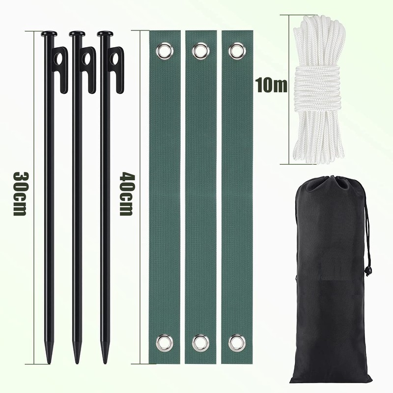 - [Size] Stake strap: 40cm x 3.8cm, Steel stake: 30cm x 3.8cm, Anchor rope length: 10m, perfect for any type of ground, no need to worry about plants, trees or other facility being blown down by the wind