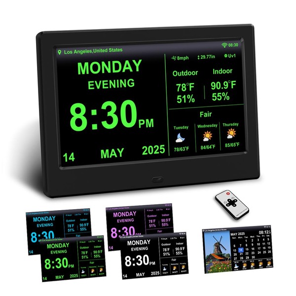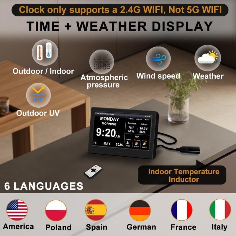 - 【2024 Newest developed, Multifunctional clock】: ①Network clock, ②Weather clock, and ③Elderly clock. It can connect to WiFi and display real-time weather forecasts, indoor and outdoor temperature and humidity, and a perpetual calendar. It features an extra-large font to display the time, date, and day of the week. built-in 8 alarm sets and announces the time hourly with voice prompts. has 8 OS languages
