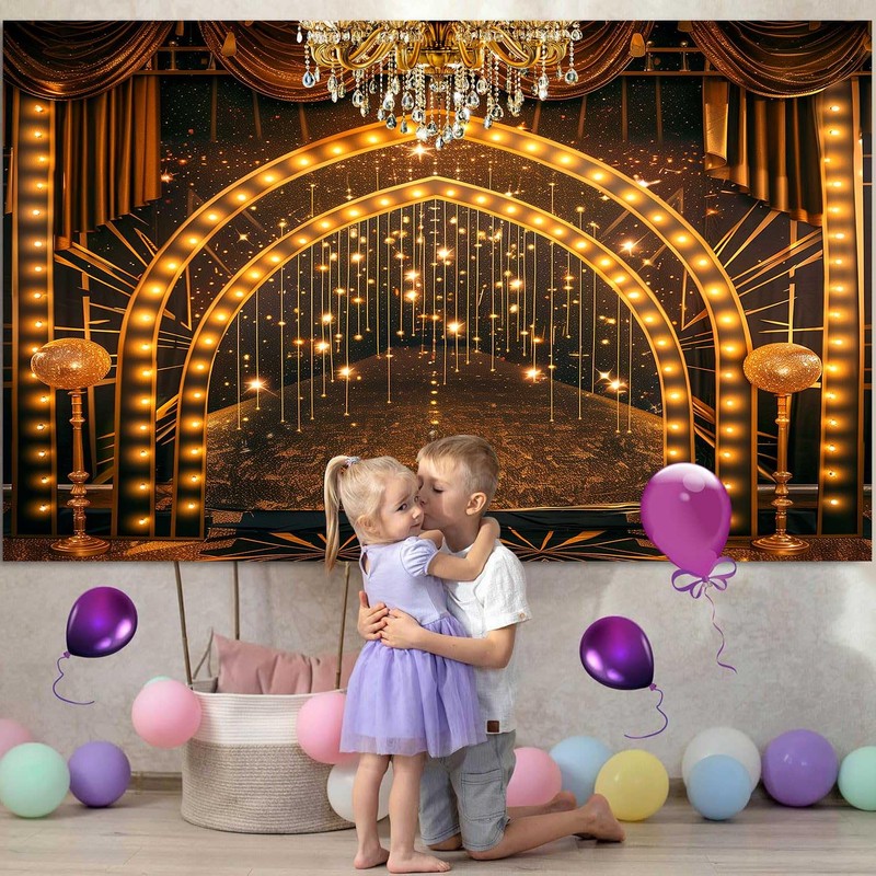- 【Size】: The size of the Golden Stage Backdrop is 7x5FT(WxH) / 2.14m x1.5 m.