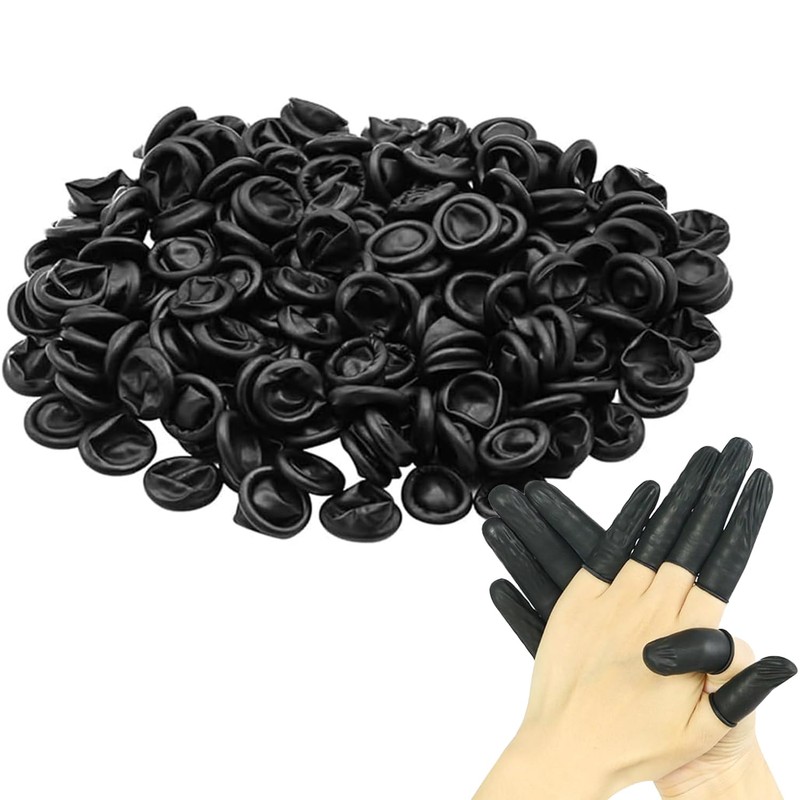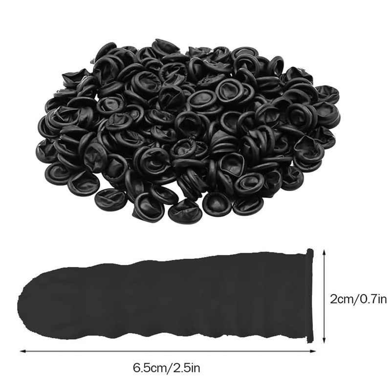 Latex Finger Cots, Latex Finger Cot, Finger Protective Cap, General Finger Cots Disposable Latex Nail Cover Durable Highly Elastic Antistatic Protect Sleeve Tool (Black) (Pack of 200)