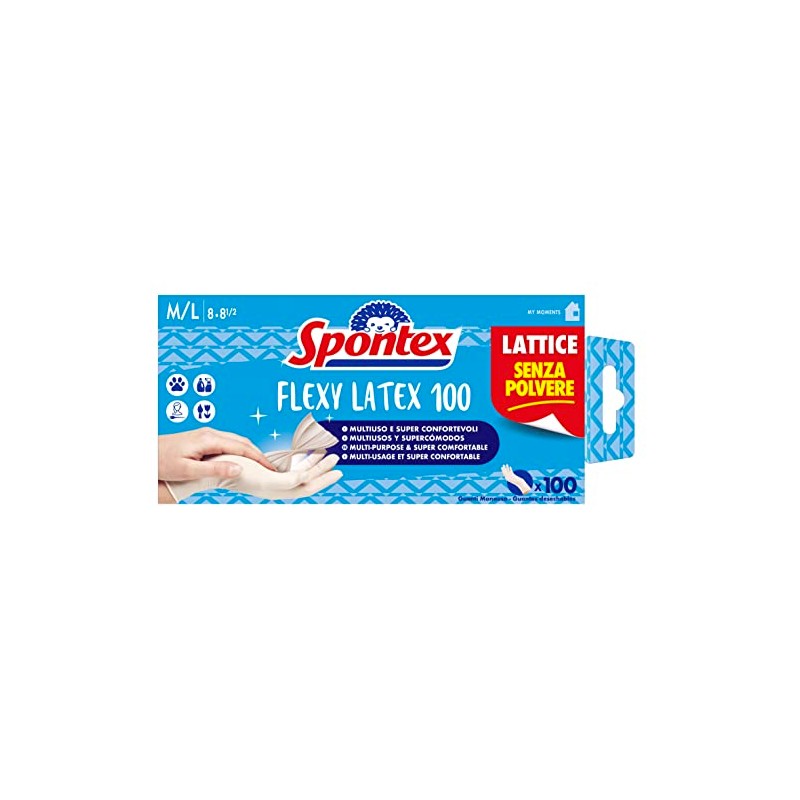 Latex Gloves Flexy Latex x 100 Card Spontex Latex Gloves Disposable Gloves Latex Gloves Pack of 100 Size M/L