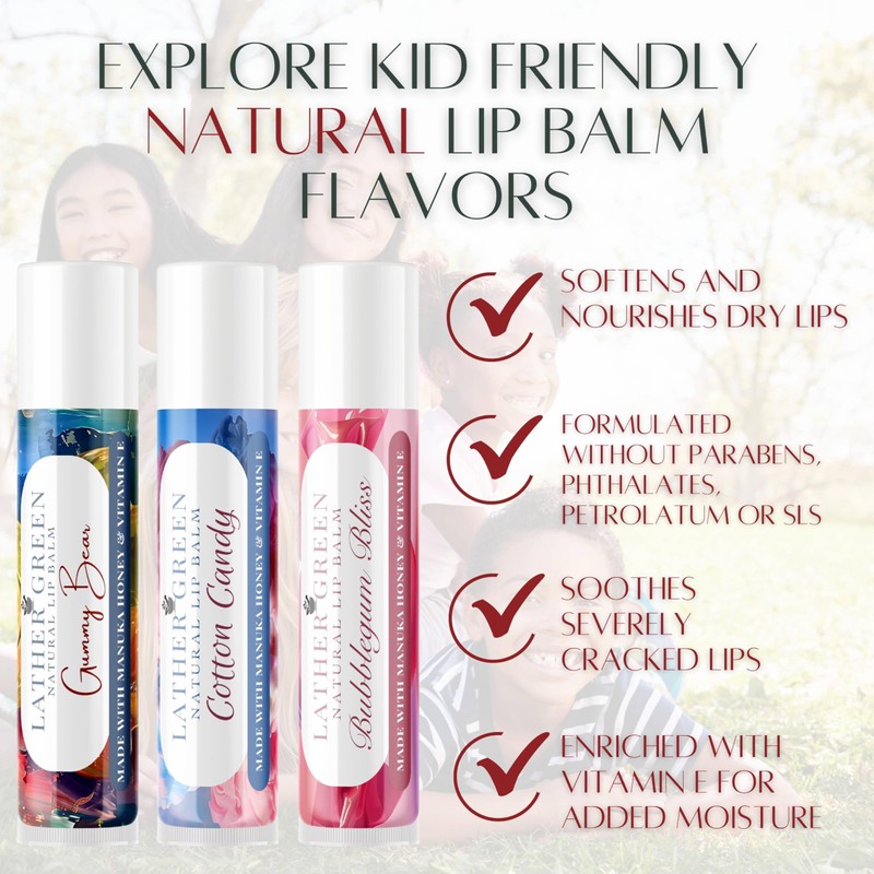 Lather Green Gummy Bear Natural Lip Balm, Pack of 5