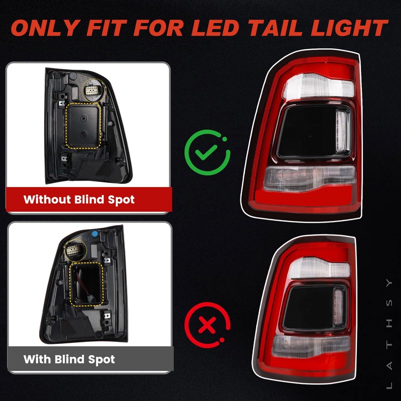 - LED Tail Light Black Cover w/o Blind Spot Detection Compatible With 2019-2023 Dodge Ram 1500. Not Compatible with Ram 1500 Classic Models