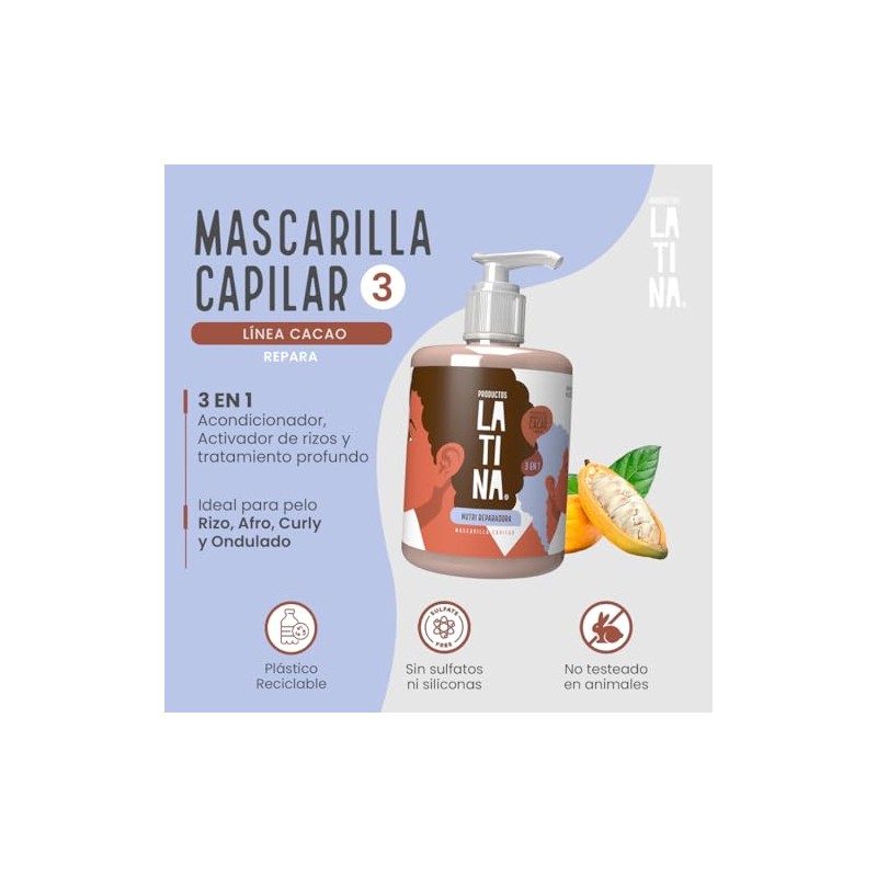 PRODUCTOS LA TI NA - LATINA® | Mascarilla para Cabello - Nutri-Reparador | Mascarilla Cacao Crema para Peinar - Activador de Rizos Belleza Mujer - Tratamiento para Cabello Maltratado con Vitaminas para el Cabello. ⭐ Calidad premium certificada con excelentes reseñas. Construcción robusta y atención al detalle. 💎 Calidad superior certificada. Ideal para quienes buscan lo mejor en calidad y estilo. Producto auténtico con satisfacción total asegurada. ¡No te quedes sin el tuyo y aprovecha esta oportunidad única!