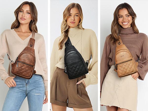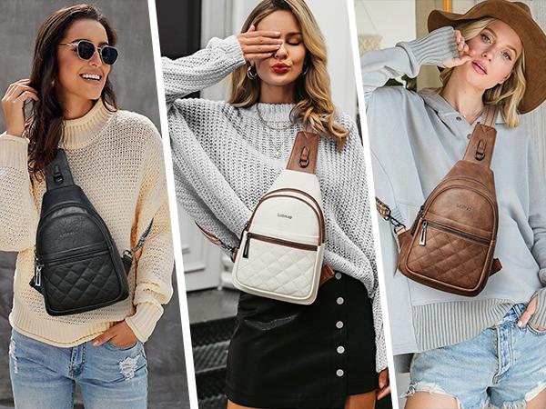 LATMAP 7L Sling Bag For Women Fanny Pack Crossbody Travel Shoulder Belt Bags Tote Backpack Purse Faux Leather Women's Leather - Color: Dark Grey