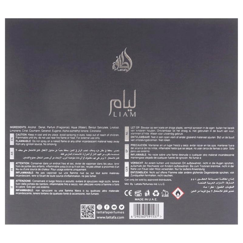 Lattafa Liam Grey Eau de Parfum Spray for Unisex, 3.4 Ounce