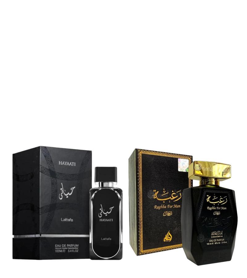Lattafa Perfumes | Hayaati Black + Raghba Bundle | Men's Perfume | 3.4 oz Per Bottle | Fruity - Cinnamon | Citrus - Woody