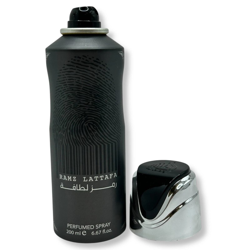 Lattafa Ramz Silver Perfumed Body Spray 6.7 oz for Men Fresh Woody Oriental Bold