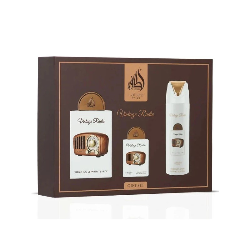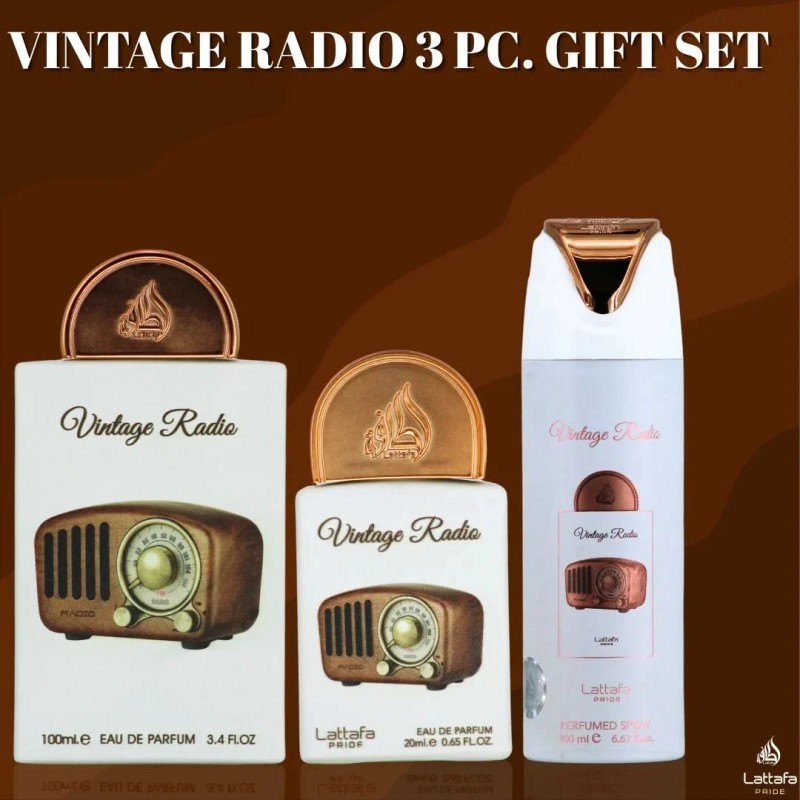 Vintage Radio by Lattafa 3pc Gift Set Unisex 3.4oz + Mini + Body Spray NIB
