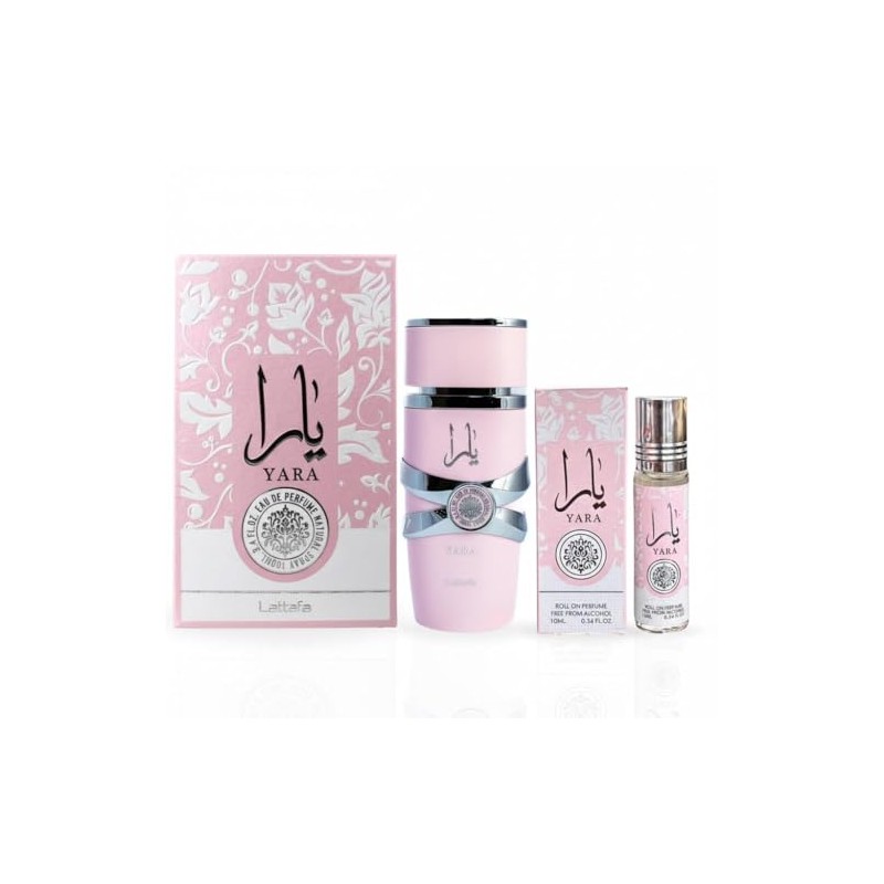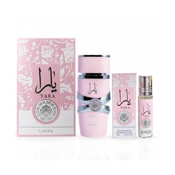 - Lattafa Yara Bundle For Women: 3.4 Fl Oz EDP + Roll On Concentrated Perfume Oil 0.34 Fl Oz