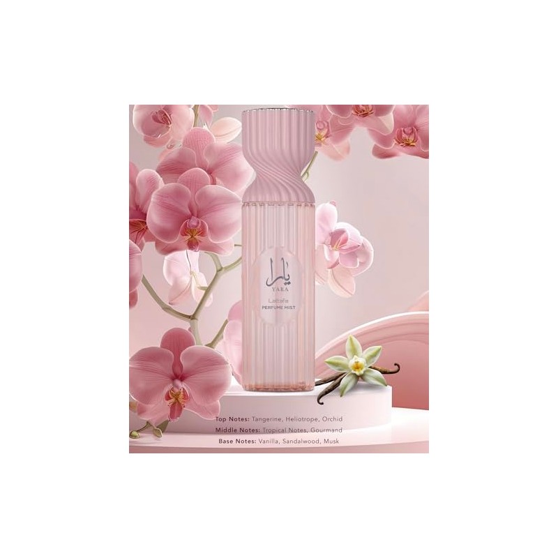 Lattafa Yara Perfume Mist 250ml – Body Spray with Tangerine, Heliotrope, Orchid, Tropical Notes, Vanilla, Sandalwood & Musk for a Soft Gourmand Floral Scent