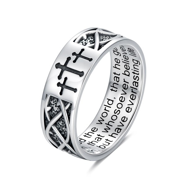 Lattd Cross Ring for Men with John 3:16 925 Sterling Silver Christian Cross Band Rings for Dad Son Size 10