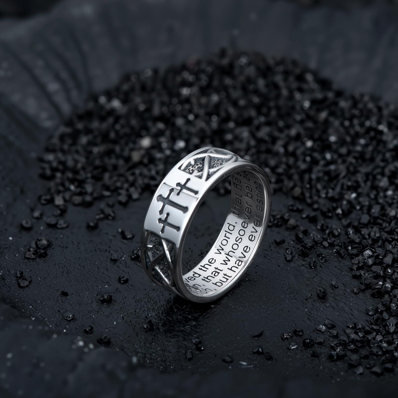Lattd Cross Ring for Men with John 3:16 925 Sterling Silver Christian Cross B...
