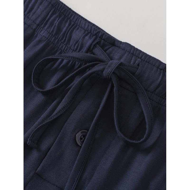 - Los pantalones de pijama deportivos cuentan con cintura elástica cubierta, bragueta de un solo botón y dos bolsillos laterales
