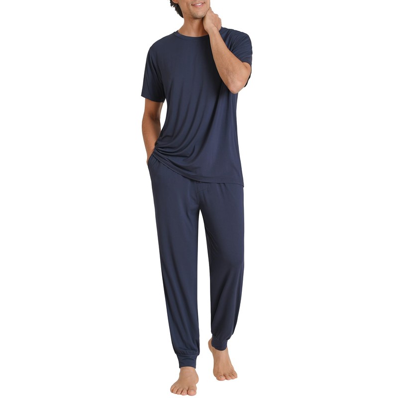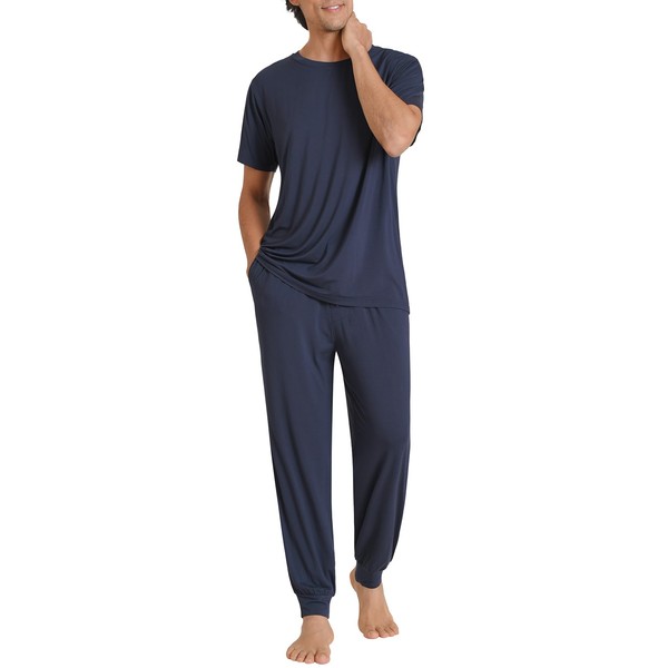 Latuza - Conjunto de pijama para hombre, suave, cómodo, de viscosa de bambú, marino, Large