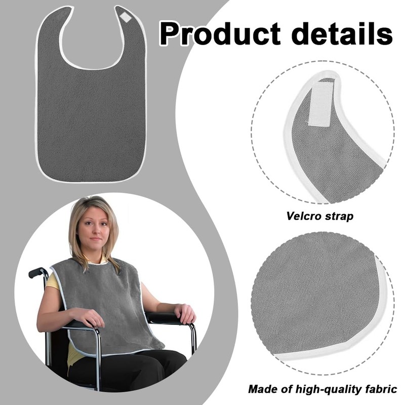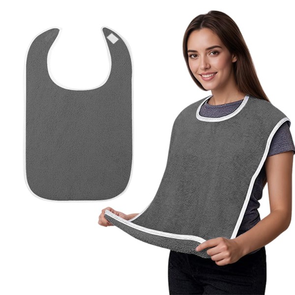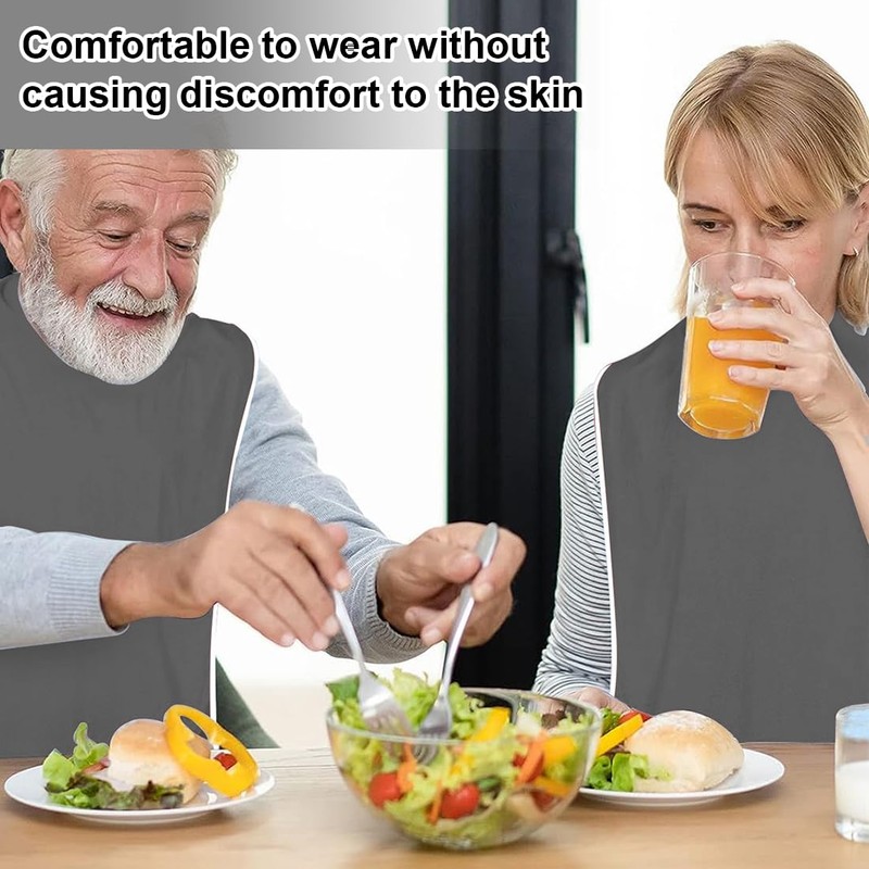 Lätzchen für Erwachsene, Latz für Senioren, Mehrweg Waschbar Verstellbare Wasserdichte Lätzchen, Grau