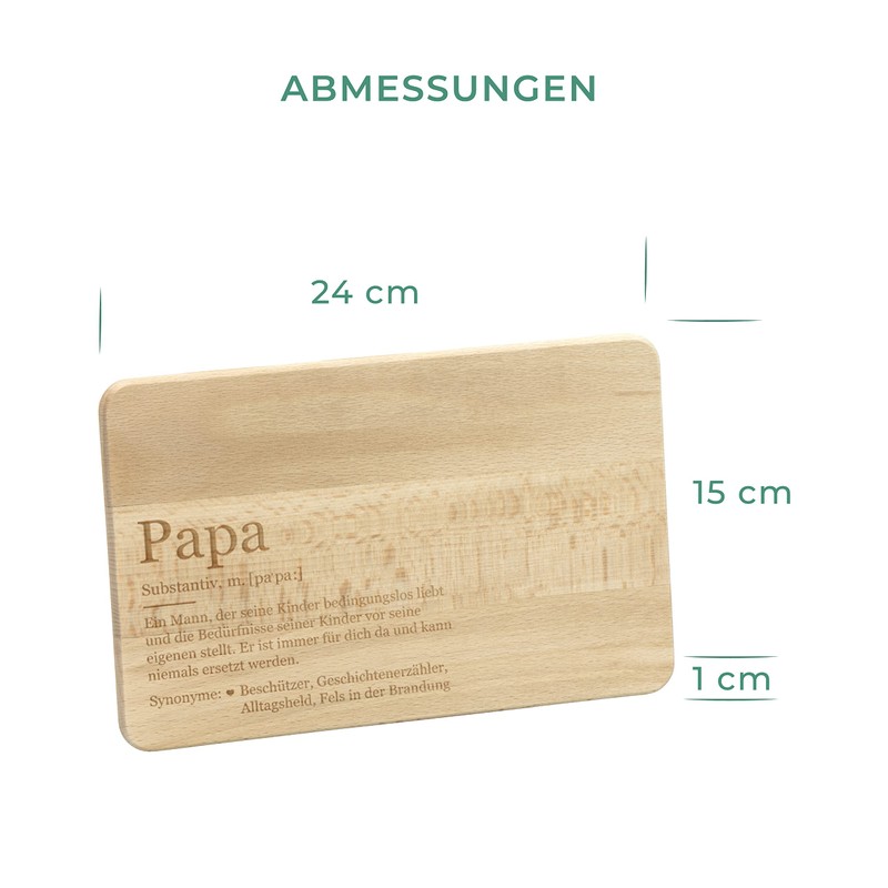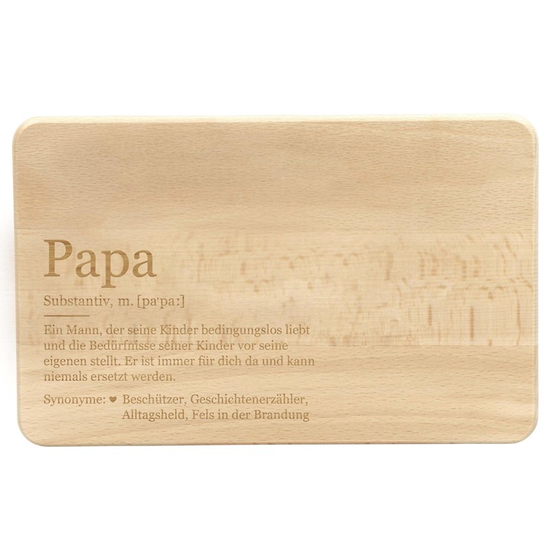 - Make dad a joy – with this breakfast board in lexicon style. The board is lovingly engraved with the term "Papa", a word explanation, a description and synonyms for "father".