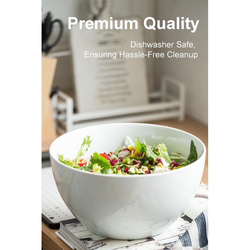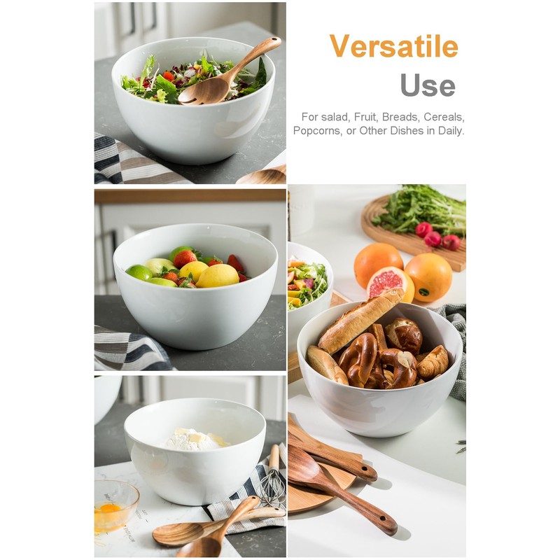 - Versatile: The large ceramic bowls for kitchen is suitable for serving cereals, salads, soups, ramen, mixed fruits, popcorn and other dishes in daily, formal dining tables and parties. Simple and elegant design makes it a presentable gift for any occasion like New Year, Valentine's Day, Birthday, Baby Shower, Wedding.