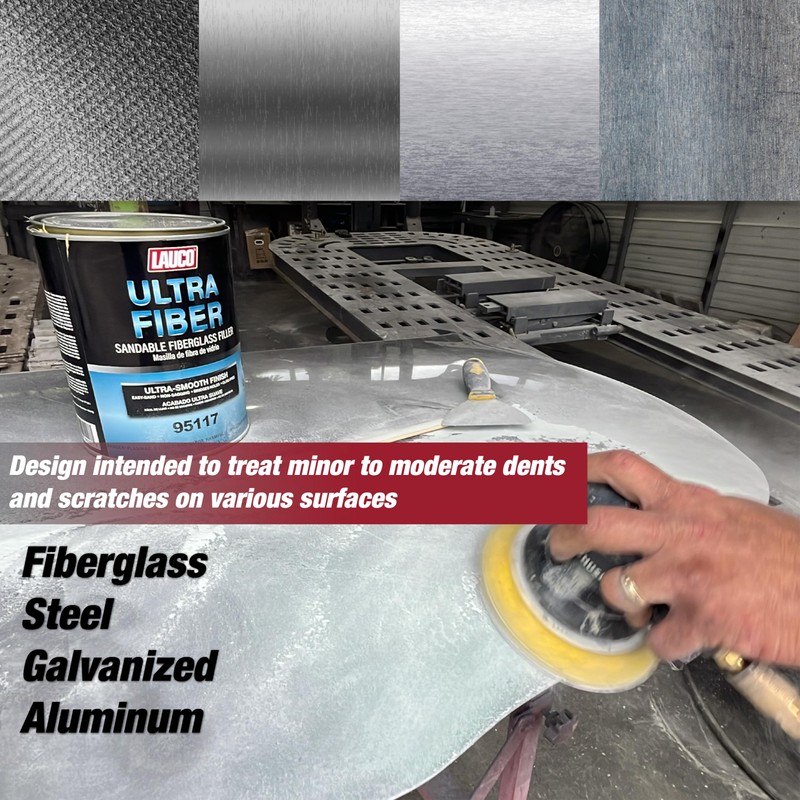 LAUCO Ultra Fiber Sandable Fiberglass Filler, Bridges Holes, Water Resistant, Lightweight, for Fiberglass, Steel, Plastics, Base Color of Yellow-Green, 3 Liters + 2 Hardener, Pack of 1