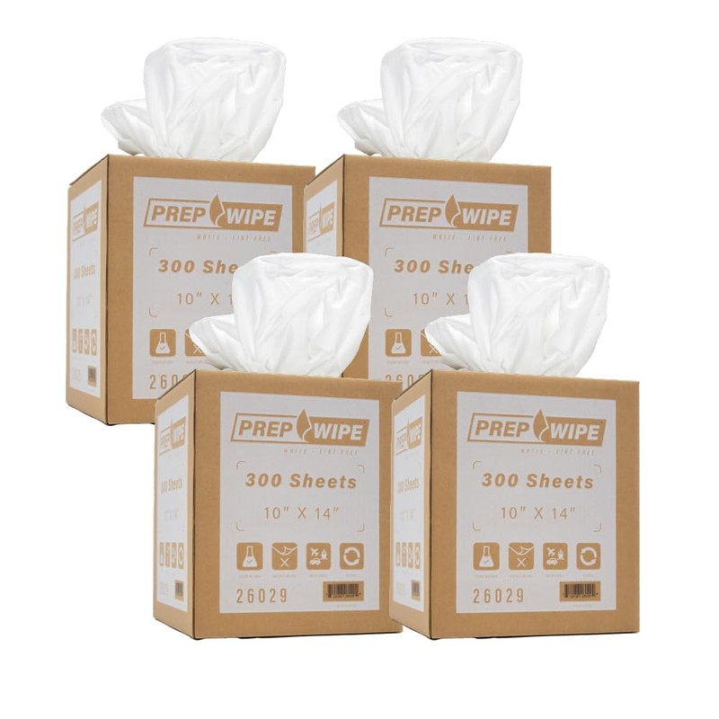 - Large Size: Each Prep Wipe White Lint-Free Cleaning Towel measures 10" x 14", providing ample surface area for tackling various cleaning jobs effectively. 4 Boxes of Prep Wipe Lint-Free Cleaning Towels (300 sheets per box) - Total 1,200 Sheets