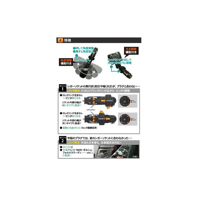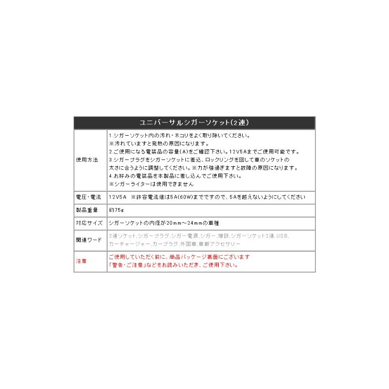 • 4. Insert your desired electronics into this product and use it. Cigarette lighter cannot be used