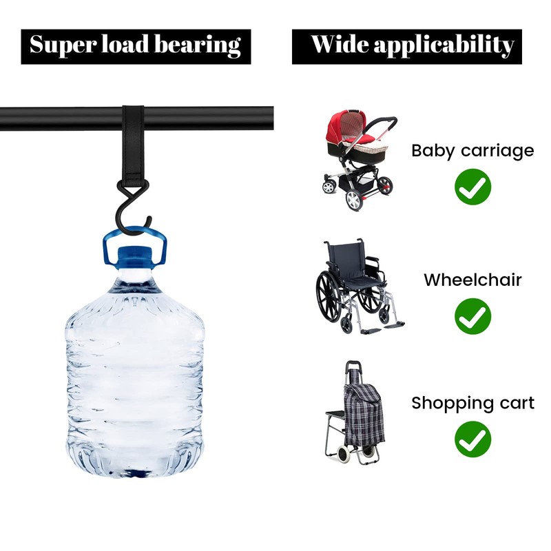 - [Super Load Capacity]:The stroller hook is made of alloy and can bear about 25kg. You can hang multiple bags or a heavy diaper bag on the stroller clip.