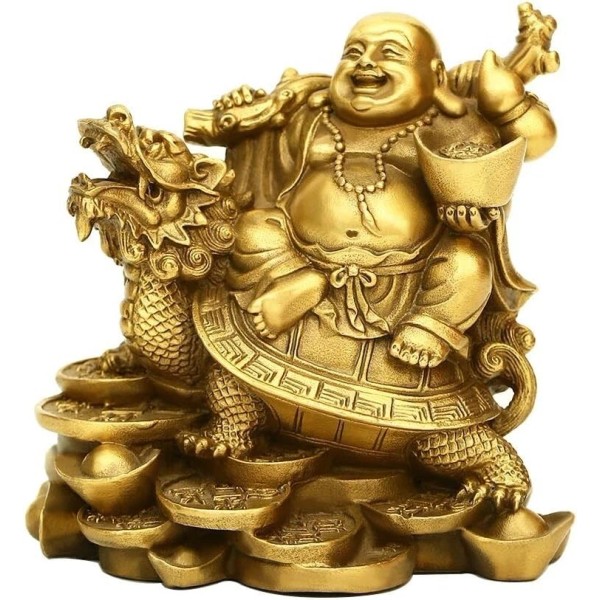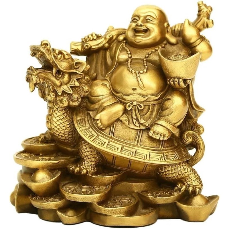 - Symbolism & Benefits - This exquisite statue features a Laughing Buddha sitting atop a sea turtle, symbolizing wealth, happiness, and prosperity. It serves as a source of positive energy, uplifting the atmosphere of your home or workplace. Let the joyful expression of the Laughing Buddha inspire happiness and bring light to your heart.