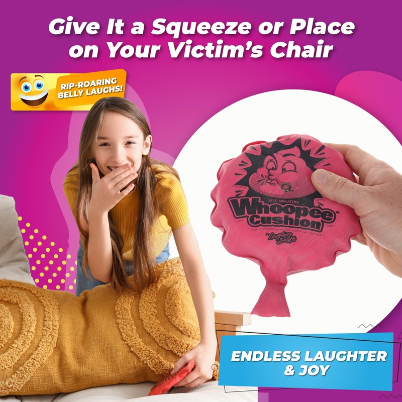 - SELF INFLATING TECHNOLOGY FOR EFFORTLESS PRANKING - Our superior quality whoopee cushion has been designed with self inflating foam technology that reinflates instantly to provide easy and endless fart-fueled fun! Awesome if you're looking for whoopie cushion for adults, whoopee cushion toy, whoopee cushion self inflating, woopie cushion toy, or whoopee cushions kids.