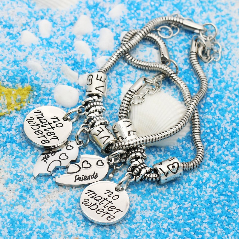 lauhonmin 2pcs BBF Best Friends No Matter Where Compass Split Broken Heart Double Bracelets Set Friendship Gift (Charm Bracelet)