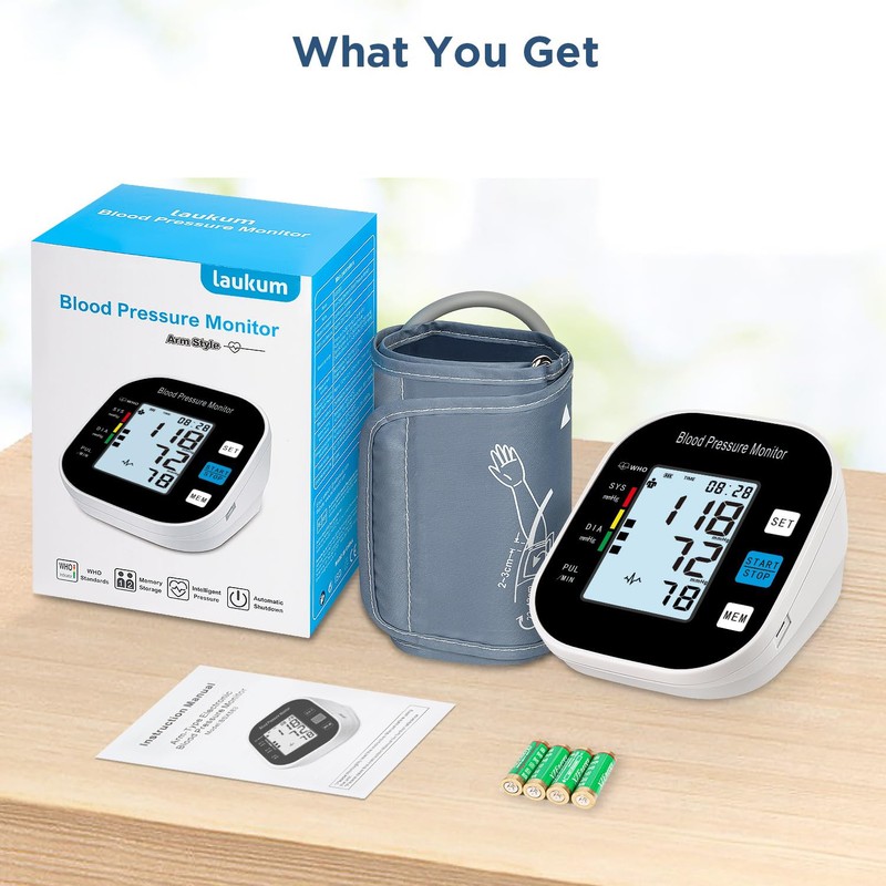 - Power-Saving & Mini Storage Bag - This blood pressure monitor comes with a compact storage bag for users to carry around while on the go. It will wisely turns off after 60 seconds of inactivity. The comfortable cuff has a circumference of 22-42cm. We offer 3-year warranty. In the box you get blood pressure monitor, cuff, user manual, and 4AA 1.5V batteries.
