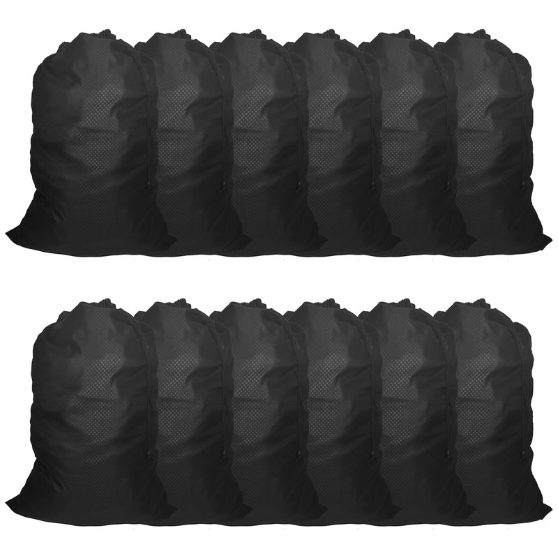 Laundry Bag 12 Pack, 40" x 30" Bulk Laundry Bags Travel with Drawstring, Extra Large heavy duty bag for Dirty Clothes Storage, Fit a Basket or Hamper(12 Pack,Black)