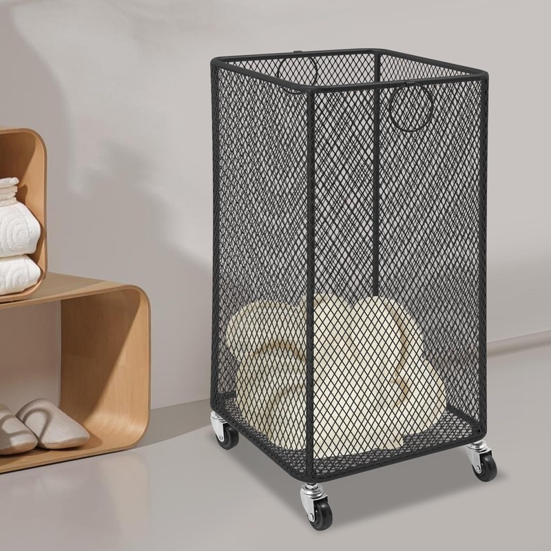 Laundry Basket with Wheels,Square Rolling Laundry Basket,Hollow Mesh Laundry ...