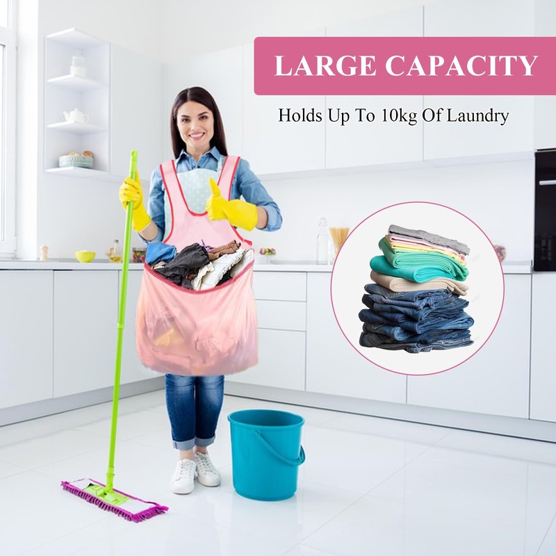 - 【Huge storage space】: Portable dry apron has a large capacity and can carry several garments at the same time for drying or cleaning. The original down-loading method ensures that the clothes fit firmly and effectively prevents them from accidentally falling on the floor. Laundry apron with bag makes housework more stable and safer.