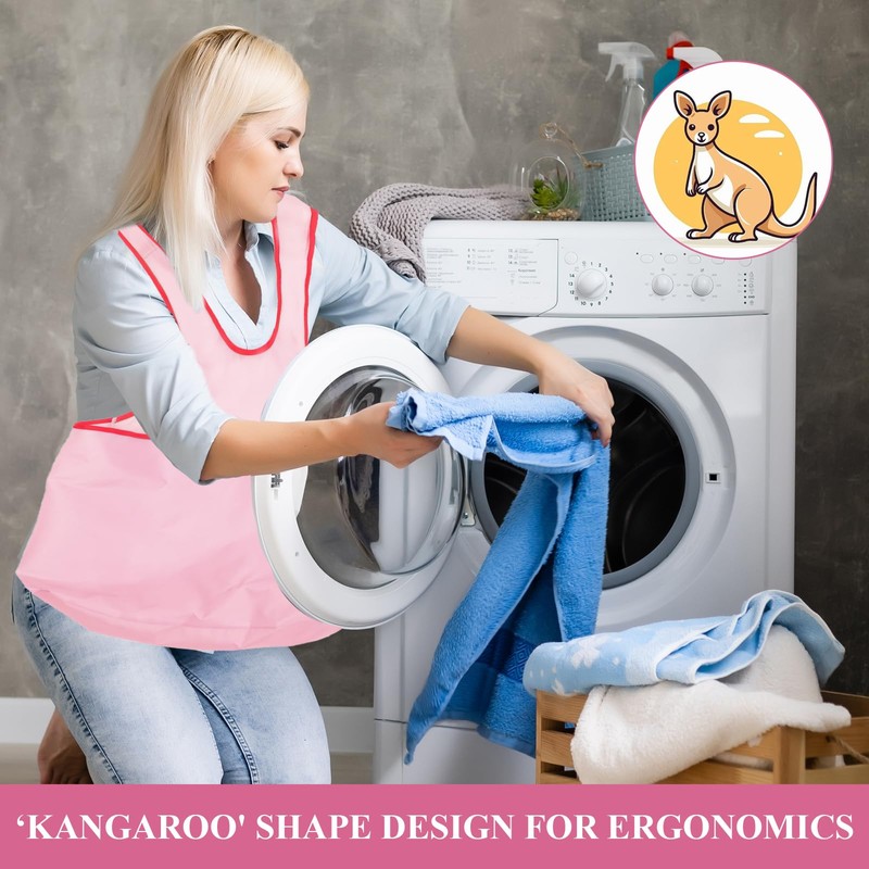 - 【Ergonomics】: Drying apron follows the principles of ergonomics and adopts an innovative "kangaroo" shaped design that allows you to avoid frequent bending when sorting clothes, effectively preventing back and neck fatigue injuries. The wide shoulder strap design relieves the shoulder further and laundry apron ensures that it remains easy and comfortable even during prolonged use.
