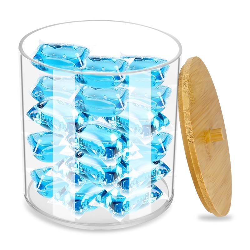 Laundry Detergent Storage, Acrylic Laundry Pods Storage Container, Bathroom Laundry Powder Storage With Bamboo Lid, Laundry Storage Containers for Washing Pods,Bath Bombs,Scent Booster