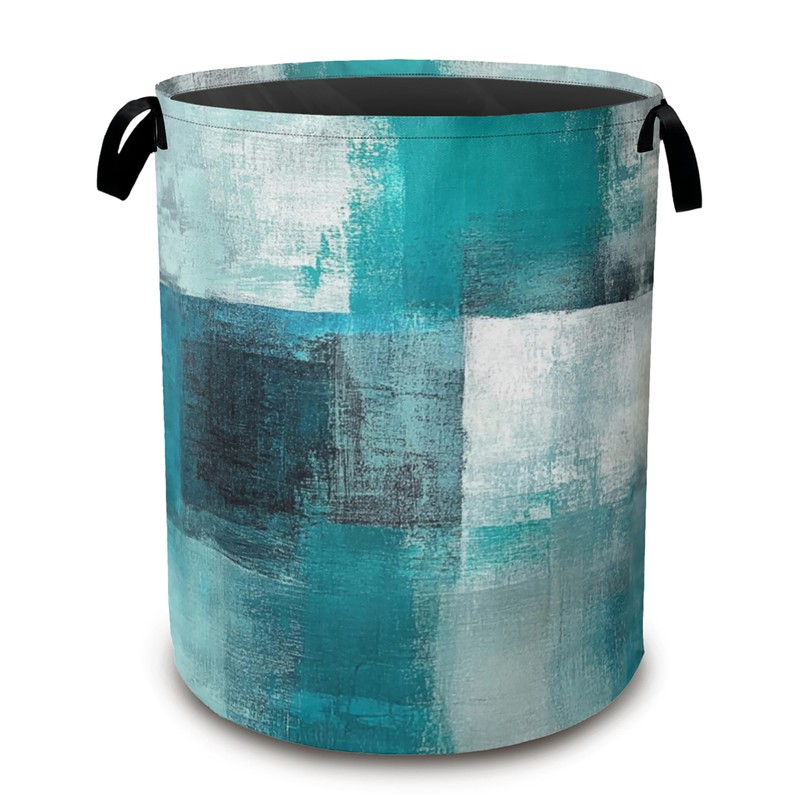 Laundry Hamper,Art Painting Laundry Basket,Grey Blue Waterproof Oxford Cloth Storage Basket with Handle for Clothes Books Nursery Home Storage Sundries 16"x20"