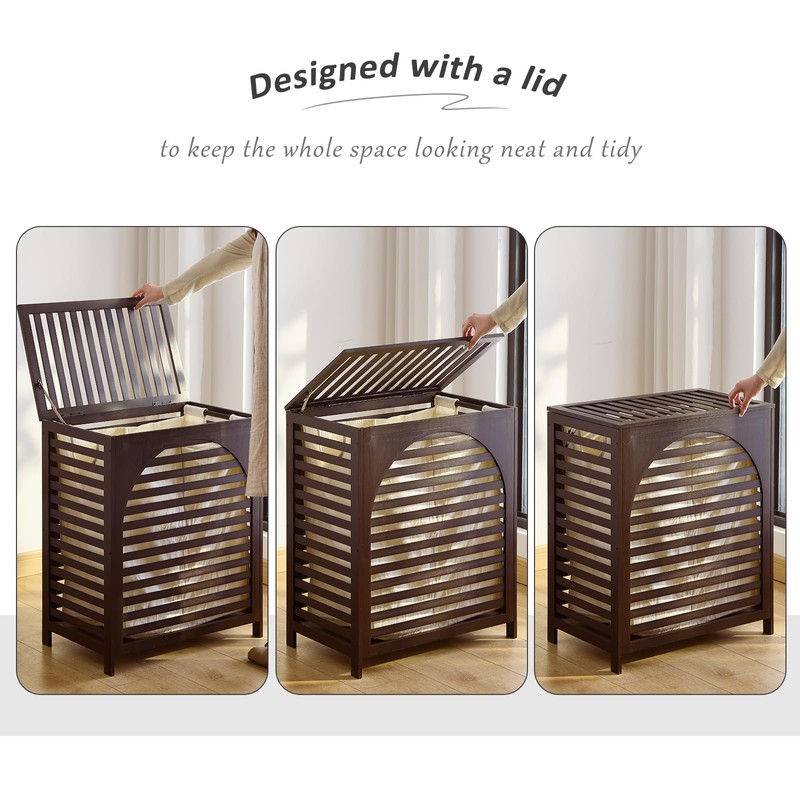 Laundry Hamper with Lid, Bamboo Clothes Laundry Basket with Handles, Removable 2-Section Liner bag, Hampers for Bedroom Aesthetic, Large Storage for Bath Towel, Sheets or Toys, Home (Brown)