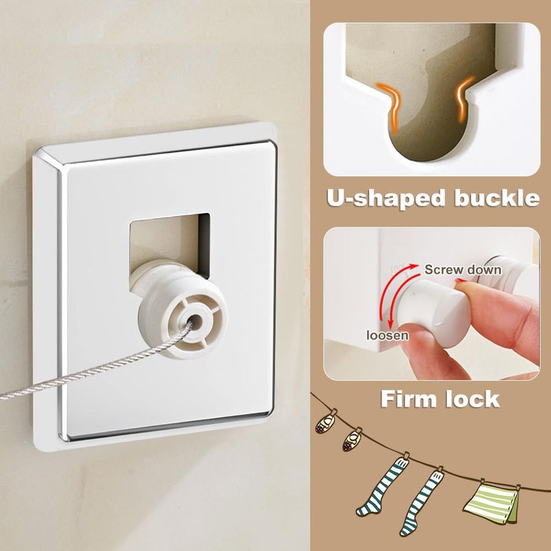 1.【Retractable Rope】: This clothesline can be retracted up to 4.2 meters, flexible to adapt to different space needs, without taking up extra space.