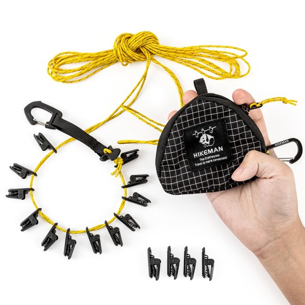 - (Integrated & Lightweight) This set includes a storage bag and rope, so you can neatly store 16 ropes and 16 clips in one storage bag. Palm size (3.5 x 4.3 inches (9 x 11 cm), apple weighs approximately 2.8 oz (80 g), so it won't become baggage no matter where you go for a trip or camping trip