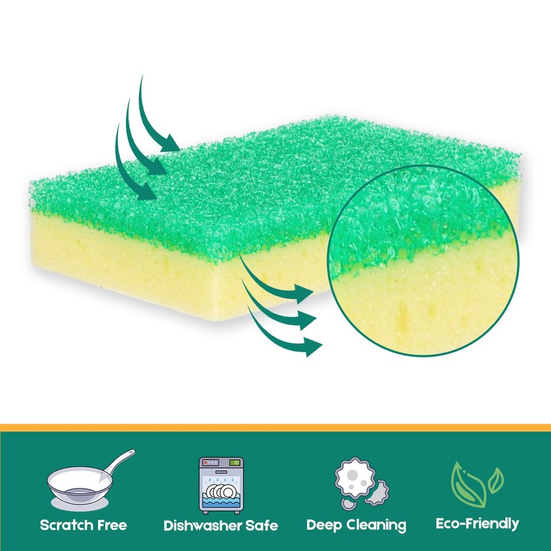 • Odor-Resistant: Designed to resist odors, these kitchen sponges are easy to clean and maintain. They rinse out effortlessly and won't develop unpleasant smells, even after multiple uses