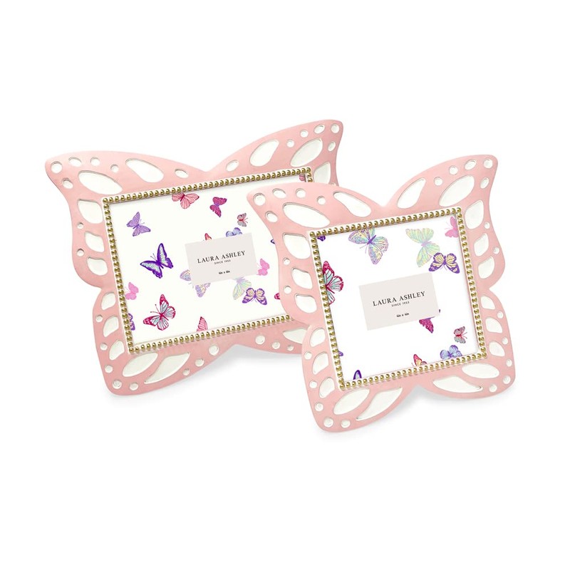 - FRAME SPECIAL MOMENTS: This Laura Ashley Resin Butterfly Picture Frame is an adorable way to fill your home with the happiness that your child brings as they discover the beauty in everyday life. What better way to celebrate their curious nature than a keepsake frame designed to surround their fun-filled expressions inside the shape of a butterfly? Your toddler may never catch a fluttering butterfly, but this lovely resin frame will capture their beauty for all to see.