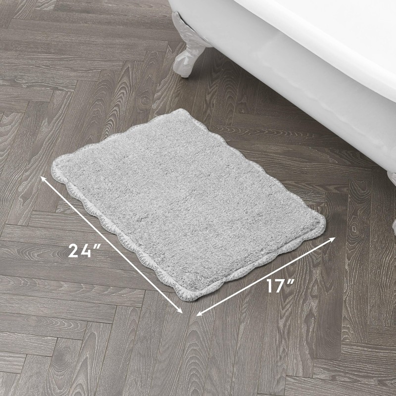 Laura Ashley Heathered Crochet Border 100% Cotton 17"x24" Skid-Resistant Bath Rug, Glacier Grey