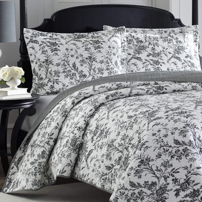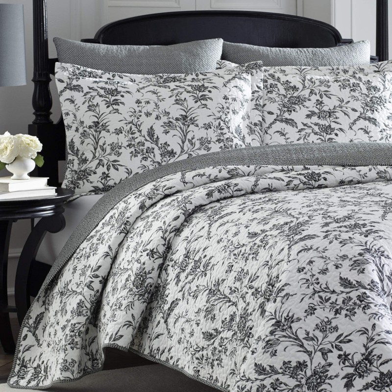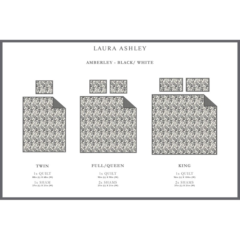 Laura Ashley Home Amberley Collection Quilt Set 100% Cotton, Breathable & Lightweight, Reversible Bedding, Pre-Washed for Added Softness, Twin, Black/White