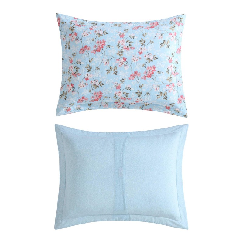 Laura Ashley - King Quilt Set, Super Soft Cotton Bedding with Matching Shams, Envelope Closure, Floral Printed Design (Blissful Blue, King)