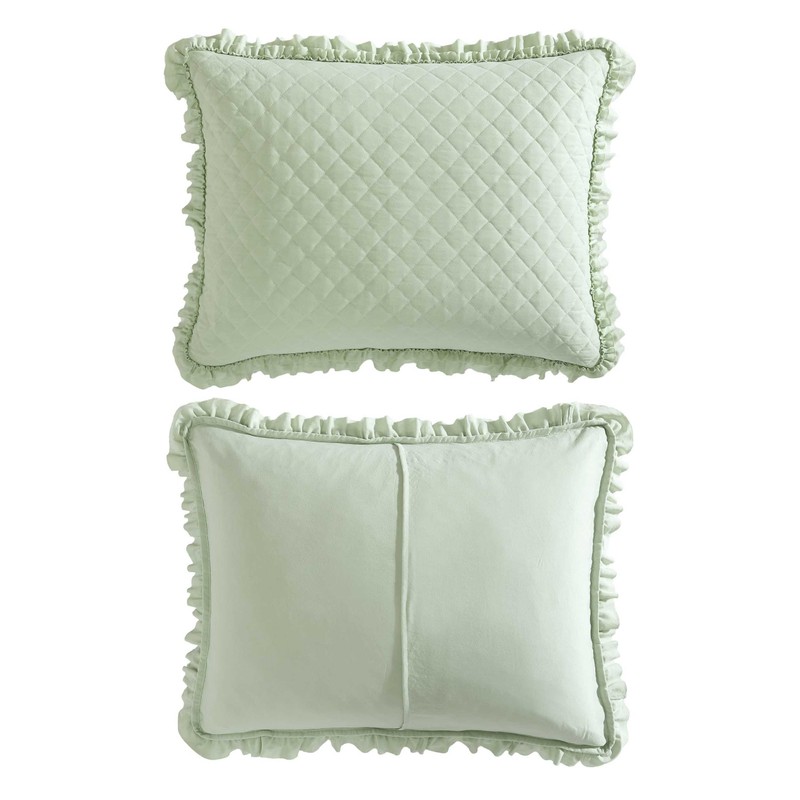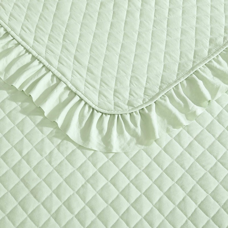 - FEATURES: Quilt and shams have a 3" ruffle embellishment; Quilt set is lightweight- perfect as a layering piece in your bedding ensemble or can be used on its own in warmer months; Quilt Fill: 100% Polyester