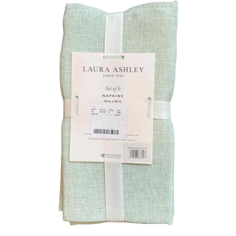LAURA ASHLEY Spring Chic Mint Green Textured 18X18 Cloth Napkins Set of 6 NEW