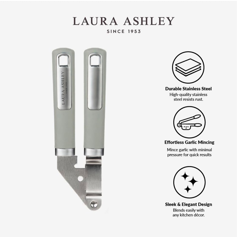 • Stylish Addition to the Kitchen: The classic Laura Ashley aesthetic complements a variety of kitchen styles, as the stainless steel garlic press integrates seamlessly with your existing kitchen gadgets, creating a cohesive and visually appealing space