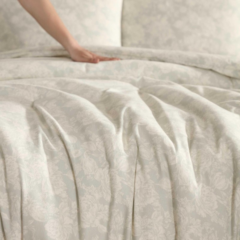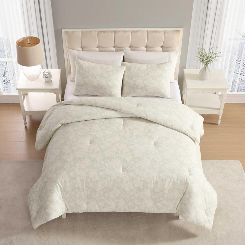 Laura Ashley - Twin Comforter Set, Reversible & Naturally Soft Cotton Flannel Bedding w/Matching Pillowcase, Medium Weight for Year Round Use, 2 Piece Bed Sets (Meredith Grey)