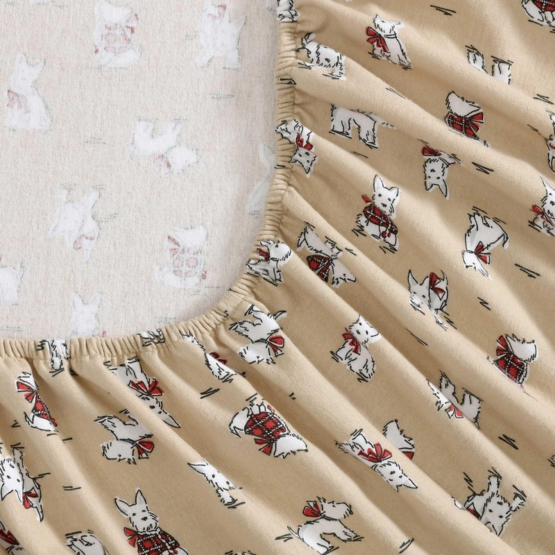 Laura Ashley - Twin Sheets, Breathable Cotton Flannel Bedding with Deep Pockets, Brushed for Extra Softness & Comfort, Oeko-Tex Certified (Holiday Scottie Beige, Twin)