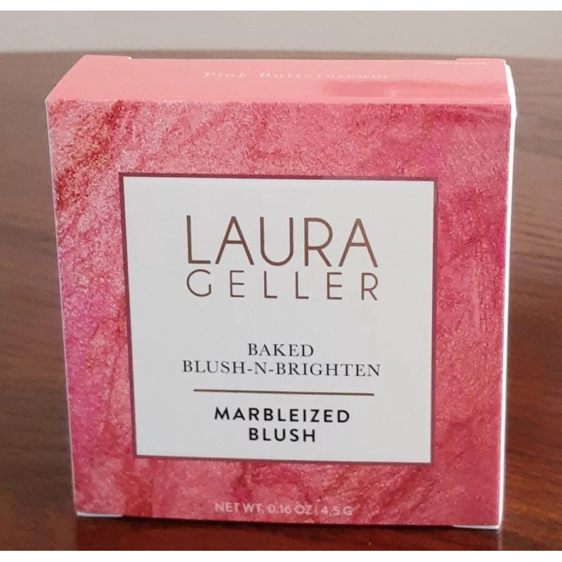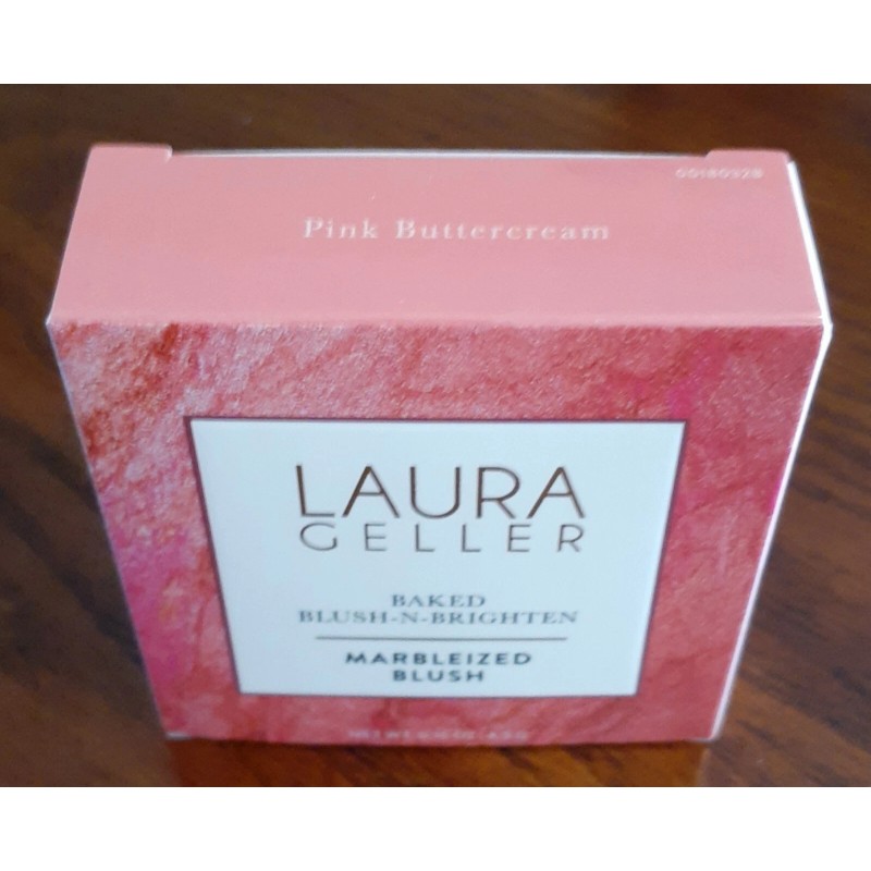 LAURA GELLER BAKED BLUSH-N-BRIGHTEN MARBLEIZED BLUSH (PINK BUTTERCREAM) W/ ANGLED BLUSH BRUSH (BOTH NEW)